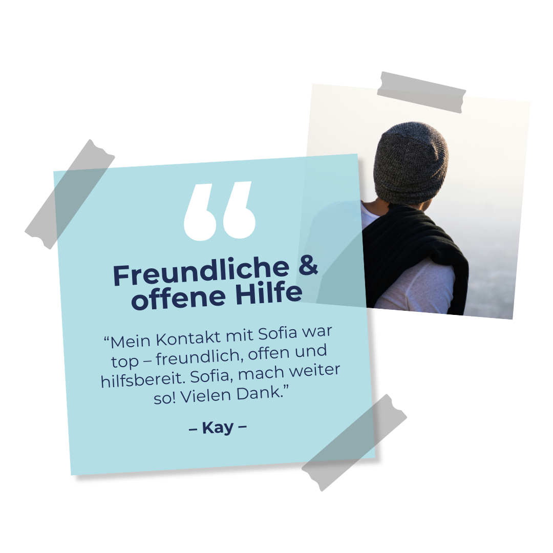 Im ersten Schritt brauchen wir nur deine Kontaktdaten. Innerhalb weniger Stunden erhältst du eine Rückmeldung!